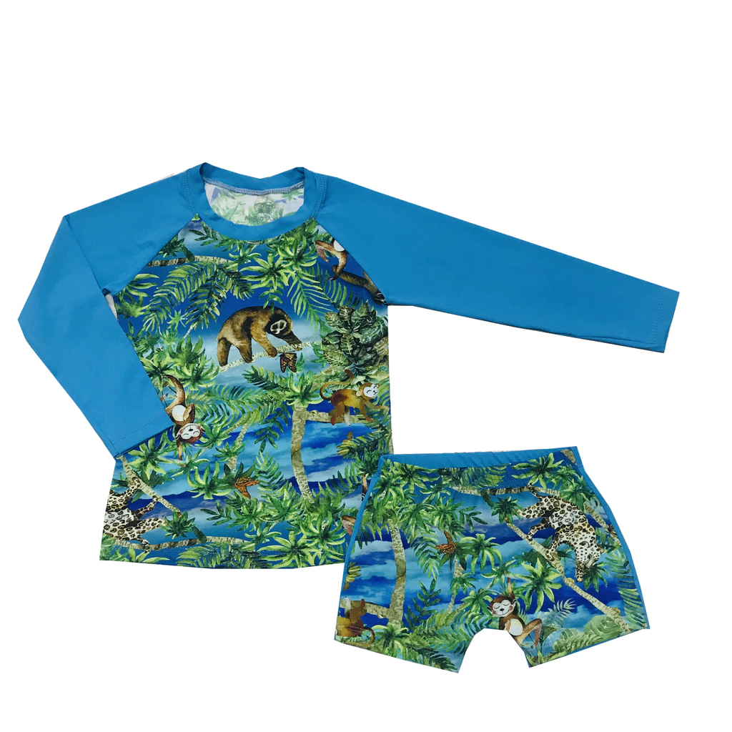 A estação mais colorida e ensolarada está chegando, e com ela vem aquela vontade de curtir uma praia, piscina e um parque né? Então, o conjunto com proteção UV é ideal para esses dias, dispensando aquele trabalhão de passar protetor solar. O tecido é poliamida, ele tem um toque bem fresquinho, e conta com uma tecnologia de proteção 50+ que não sai com a lavagem!! Indispensável não?!