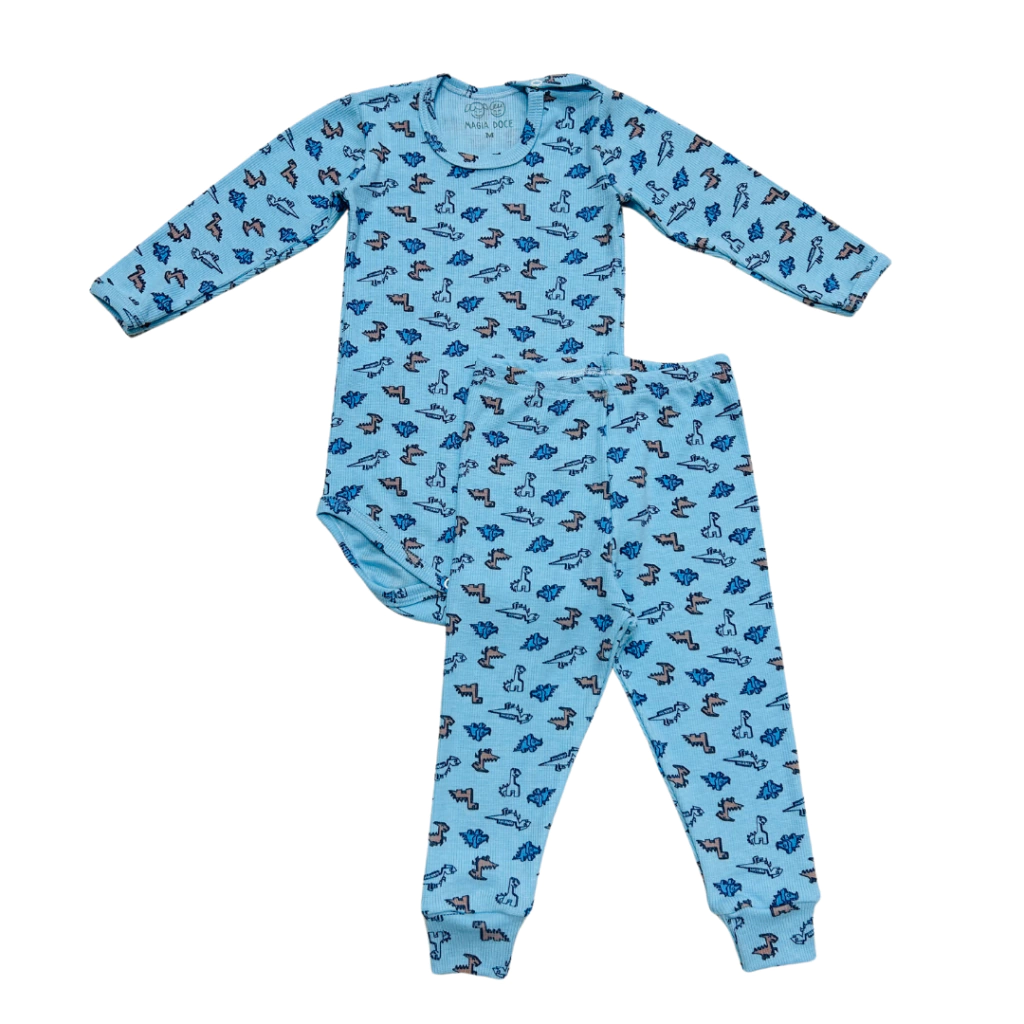 Vocês pediram e a gente fez! O pijama canleado estampado é para as amantes dos pijamas canelados/ribana, o básico bem gostoso. O conjunto acompanha calça e body estampados com peixinhos. A calça possui punho, já o body possui acabamentos em viés no mesmo tecido, com abertura no ombro para ajudar na hora de vestir. O canelado é um tecido leve, macio e com grande elasticidade, ideal para meia estação.